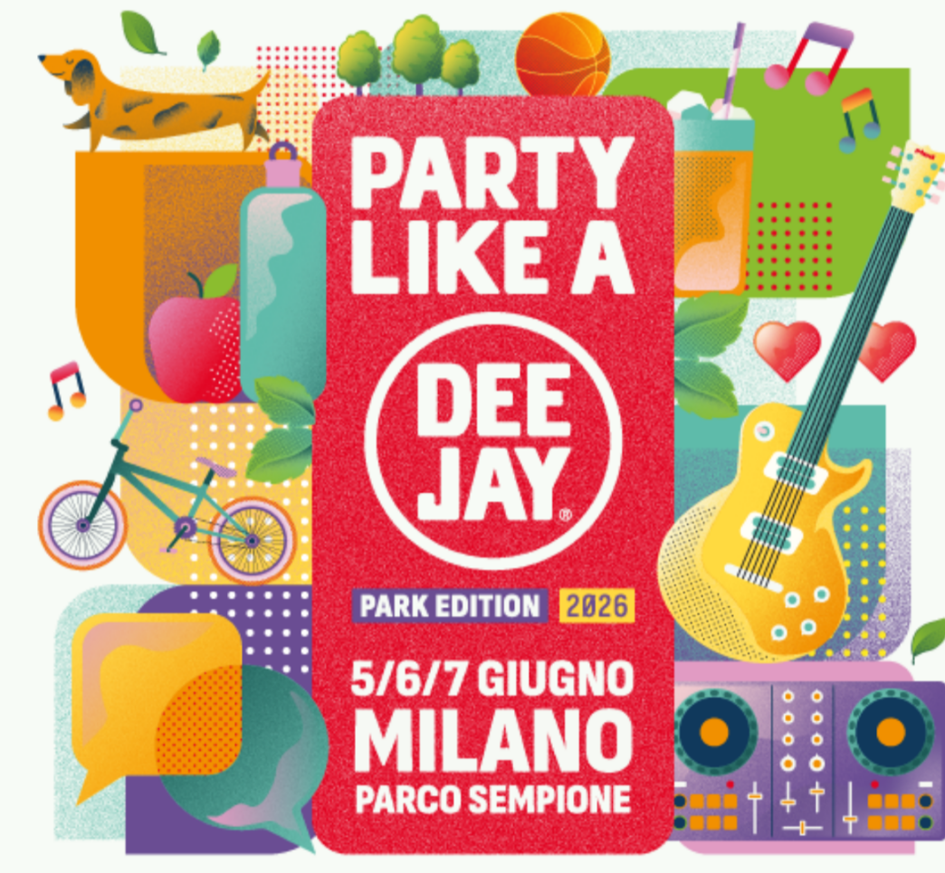 Torna Party Like a Deejay, la festa di Radio Deejay che da venerdì 5 a domenica 7 giugno 2026 animerà Parco Sempione e l’Arco della Pace con musica, sport e intrattenimento.