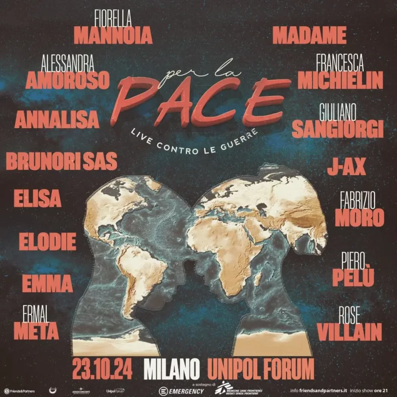 Il 23 ottobre la musica italiana si unisce all’Unipol Forum di Milano, per un concerto di solidarietà: “PER LA PACE – LIVE CONTRO LE GUERRE”, un evento benefico volto a sensibilizzare il pubblico sull’urgenza di promuovere la pace e sostenere chi soffre a causa delle emergenze umanitarie causate dai conflitti.