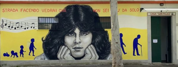 Per festeggiarlo è stato anche realizzato un murales creato da un suo gruppo di fan presso Casa San Felice, casa-famiglia gestita dal parroco dell’omonima chiesa nel quartiere romano di Centocelle a Roma (Piazza di S. Felice da Cantalice, 20) che raffigura un primo piano dell’artista unitamente alle note e alle parole di “Strada facendo”, celebre brano del 1981.