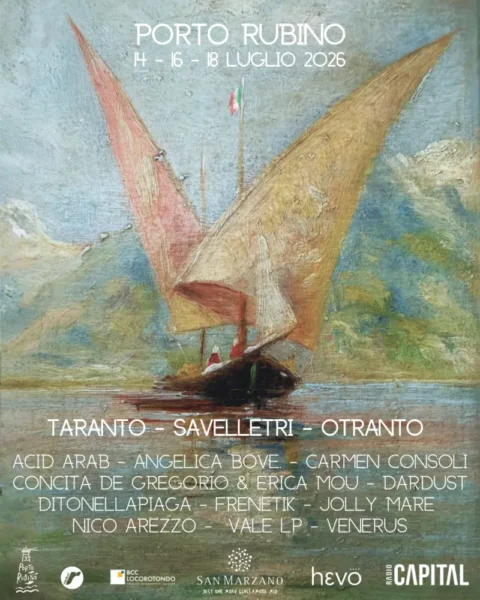 Il viaggio prosegue il 16 luglio a Savelletri con Porto Rubino Balla, la tappa più notturna e pulsante del festival, dove il ritmo guida la rotta e il mare diventa cassa di risonanza. A far vibrare la costa saranno Acid Arab, Dardust, Frenetik e Jolly Mare, per una notte che unisce club culture e suggestioni mediterranee.