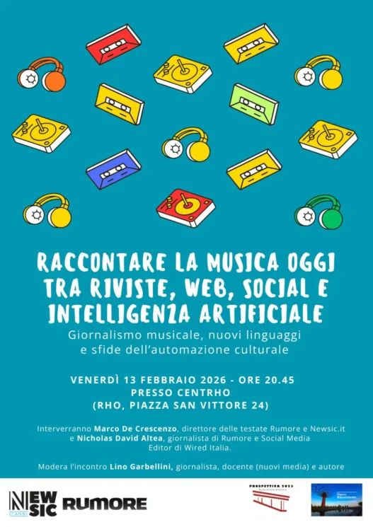 Venerdì 13 febbraio 2026, alle ore 20.45, presso CentRho (Rho, Piazza San Vittore 24), si terrà l’incontro pubblico “Raccontare la musica oggi: tra riviste, web, social e Intelligenza Artificiale”, dedicato alle trasformazioni profonde del giornalismo musicale nell’era della convergenza digitale e dell’automazione dei contenuti.
