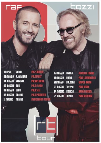 Queste le date a oggi confermate del tour “RAF TOZZI” (prodotto da F&P GROUP in collaborazione con Colorsound):