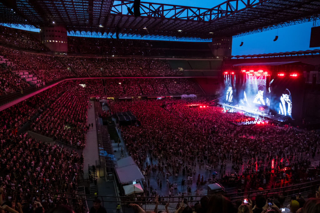 Nell’afosa estate milanese la pioggia sceglie esattamente l’inizio dell’esibizione per fare capolino in un San Siro strapieno, ma da subito l’atmosfera è quella di una serata speciale.