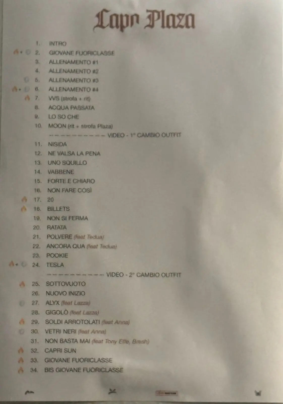 Tanti in scaletta i brani dei vecchi album parecchio apprezzati dai presenti, come per esempio 20, Ne è valsa la pena e Uno squillo.