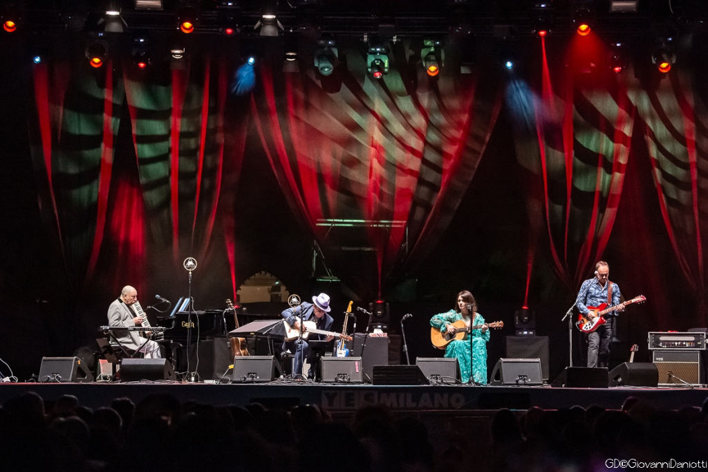 Molto attesa era la versione di “Cerco un centro di gravità permanente” che Costello canta in italiano con un ottimo arrangiamento anch’esso privo di tutte le sovrastrutture sonore dell’originale e che il musicista inglese conclude con una citazione di “Unchained Melody” che fa subito “Ghost” (era nella colonna sonora del film). La serata, dopo essere nuovamente passata anche per l’altra “B”, quella di Bacharach che connota Costello, con la versione di “Please Stay”, si conclude sulle note di “(What’s So Funny ‘Bout) Peace, Love And Understanding” firmata nel ’74 da Nick Lowe per i suoi Brinsley Schwarz. E su questa stupenda versione, pochi minuti prima della mezzanotte i due salutano il pubblico (impegnato in una standing ovation) e chiudono l’esibizione.