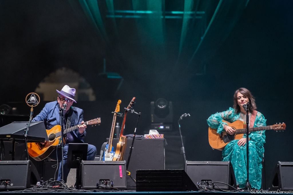 Molto attesa era la versione di “Cerco un centro di gravità permanente” che Costello canta in italiano con un ottimo arrangiamento anch’esso privo di tutte le sovrastrutture sonore dell’originale e che il musicista inglese conclude con una citazione di “Unchained Melody” che fa subito “Ghost” (era nella colonna sonora del film). La serata, dopo essere nuovamente passata anche per l’altra “B”, quella di Bacharach che connota Costello, con la versione di “Please Stay”, si conclude sulle note di “(What’s So Funny ‘Bout) Peace, Love And Understanding” firmata nel ’74 da Nick Lowe per i suoi Brinsley Schwarz. E su questa stupenda versione, pochi minuti prima della mezzanotte i due salutano il pubblico (impegnato in una standing ovation) e chiudono l’esibizione.