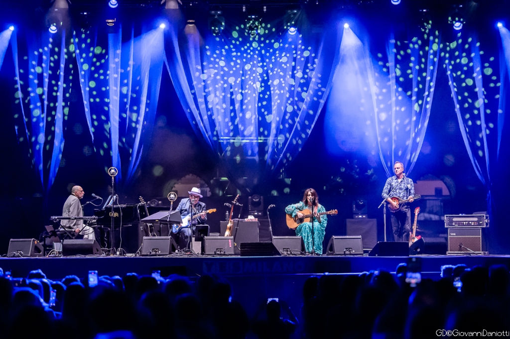 Molto attesa era la versione di “Cerco un centro di gravità permanente” che Costello canta in italiano con un ottimo arrangiamento anch’esso privo di tutte le sovrastrutture sonore dell’originale e che il musicista inglese conclude con una citazione di “Unchained Melody” che fa subito “Ghost” (era nella colonna sonora del film). La serata, dopo essere nuovamente passata anche per l’altra “B”, quella di Bacharach che connota Costello, con la versione di “Please Stay”, si conclude sulle note di “(What’s So Funny ‘Bout) Peace, Love And Understanding” firmata nel ’74 da Nick Lowe per i suoi Brinsley Schwarz. E su questa stupenda versione, pochi minuti prima della mezzanotte i due salutano il pubblico (impegnato in una standing ovation) e chiudono l’esibizione.