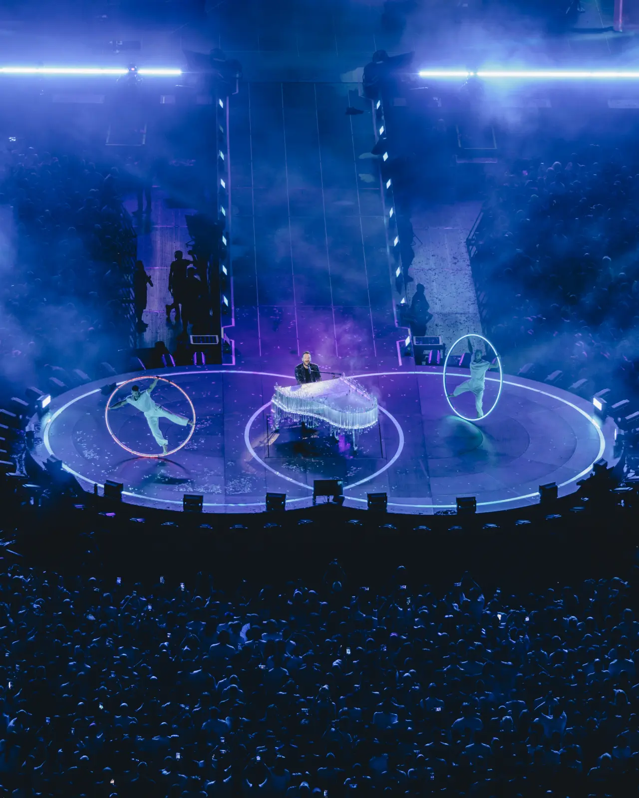 Assolutamente. Questa volta il palco mi è “diventato”, nel senso che mi ha permesso di rendere reali certe suggestioni che avevo in mente. La scenografia, i visual, i laser, gli effetti tridimensionali: tutto è pensato per raccontare. Abbiamo creato persino un effetto aurora boreale, e sono immagini reali, non generate da intelligenza artificiale. Non c’è nulla di artificiale in questo show: è tutta farina del sacco umano. Abbiamo usato performer, ma non come ballerini gestiti: sono elementi espressivi, che completano il paesaggio visivo e amplificano i linguaggi. Non sto facendo uno show, sto cercando di creare un mondo.