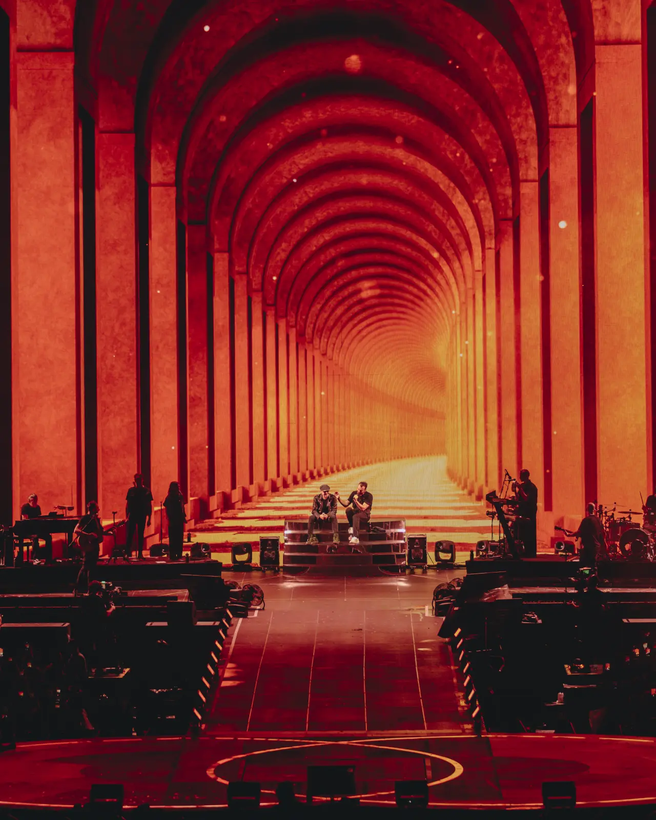 Il progetto luci firmato da Mamo Pozzoli è pensato come estensione della musica. Oltre 600 proiettori LED, strutture circolari motorizzate e una palette cromatica studiata sin dall’inizio danno vita a uno spazio in continua metamorfosi, dove la luce si fa racconto.
