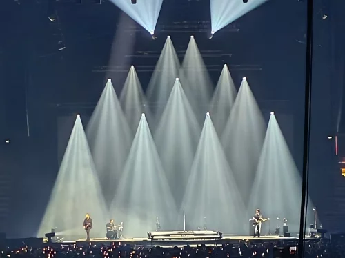 E il pubblico di Milano sembra gradire, accompagnando con boati l’arrivo delle “hit” della band e accendendo le torce dei telefoni nei momenti più suggestivi e intensi dello show.