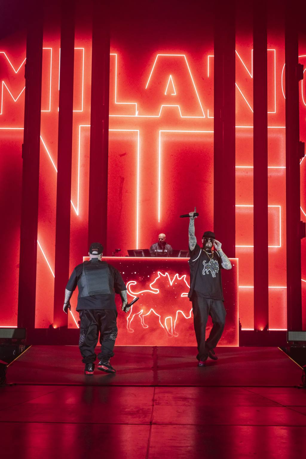 Con una imponente ledwall a forma di Duomo di Milano sul fondo e la consolle dalla quale svettava Don Joe, Jake e Guè hanno inanellato un successo dopo l’altro dai loro pezzi storici fino alle hit e i successi contenuti nel loro album pubblicato dopo 9 anni di silenzio.