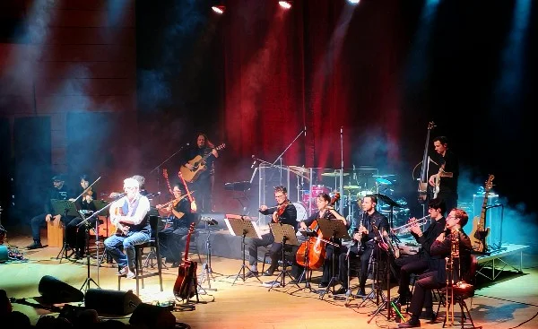 Già nel 2016 aveva sperimentato l’accompagnamento orchestrale, allora con un ensemble sinfonico che conferiva al concerto un “respiro pesante” e una potente valenza evocativa. Questa volta tutto suona più leggero, quasi come un folk da camera: la matrice popolare resta intatta, ma viene declinata con una ricchezza di sfumature e un comparto sonoro che ne eleva la qualità e l’impatto.