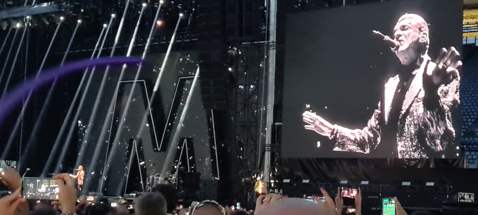 Emozionanti!!! I Depeche Mode sono stati semplicemente emozionanti ieri sera allo Stadio Olimpico di Roma. Dave Gahan e Martin Gore hanno regalato al loro pubblico un concerto davvero perfetto, dove suono, setlist e scenografia (semplice ed efficace con una grande M illuminata sullo sfondo) hanno contribuito non poco a rendere pazzesca e altamente coinvolgente questa data romana del Memento Mori Tour.