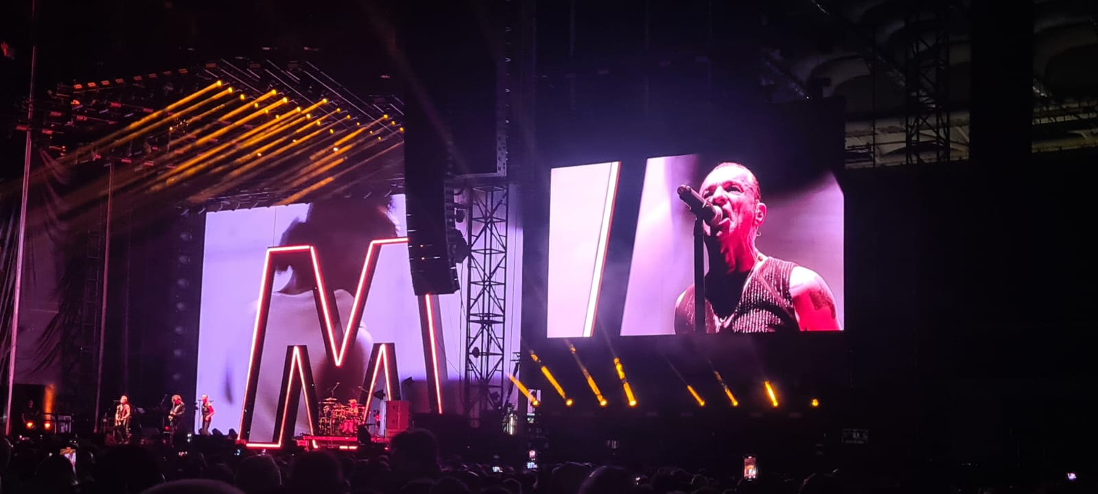Emozionanti!!! I Depeche Mode sono stati semplicemente emozionanti ieri sera allo Stadio Olimpico di Roma. Dave Gahan e Martin Gore hanno regalato al loro pubblico un concerto davvero perfetto, dove suono, setlist e scenografia (semplice ed efficace con una grande M illuminata sullo sfondo) hanno contribuito non poco a rendere pazzesca e altamente coinvolgente questa data romana del Memento Mori Tour.