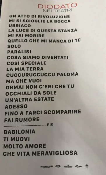 Diodato non sbaglia, mette in scena uno spettacolo completo, affascinante, di grande spessore emotivo, musicale e teatrale. Dimostra che sceso da vincitore dal palco del Festival di Sanremo del 2020 ha saputo crescere, conservando la sua credibilità e la sua integrità intellettuale ed artistica. Sta disegnando un percorso vincente e convincente. Come questo spettacolo dimostra.