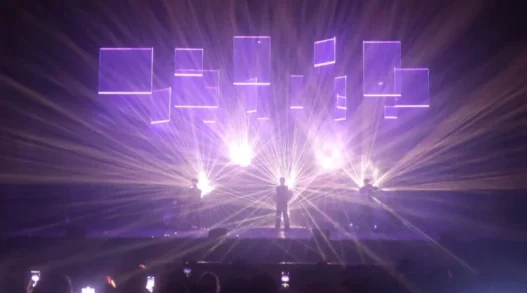 Un ruolo di primo piano lo ricoprono anche le luci, con una impostazione teatrale, fari alle spalle dell’artista con quelli classici che illuminano la band uniti ad effetti di laser che ancora riescono a stupire.