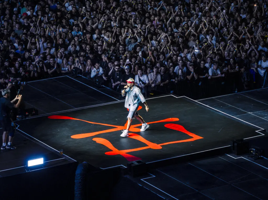 Il suo carisma ha tenuto il filo dell’intera serata, trasformando EM16 in un manifesto di appartenenza. Milano è la sua casa, non è solo il suo playground, è la città che l’ha fatto diventare icona, e ogni barra, ogni strobo acceso sembrava urlarlo.