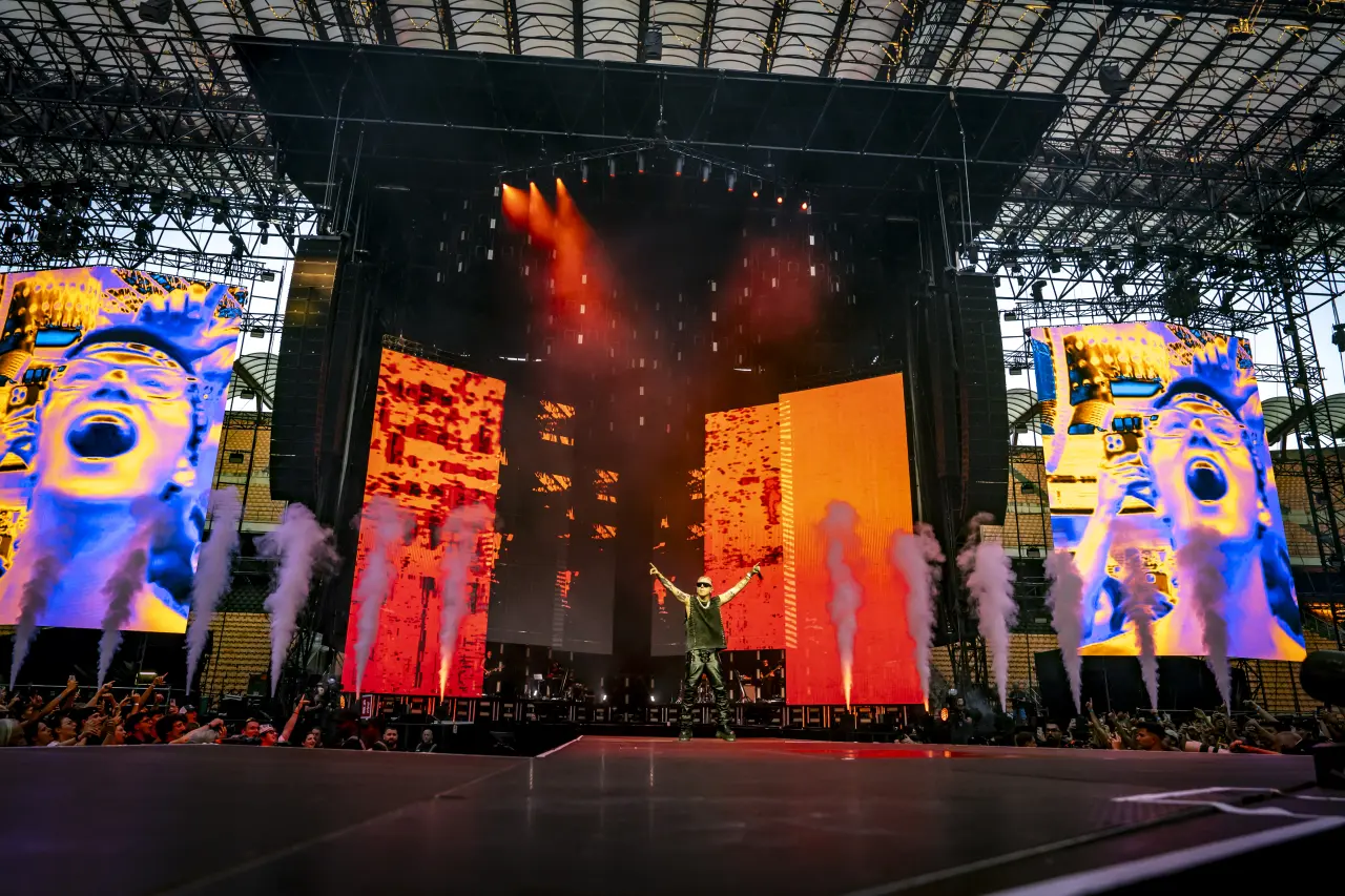 Più che un concerto, è stata una celebrazione da stadio. Ha persino presentato il nuovo inno del Milan.