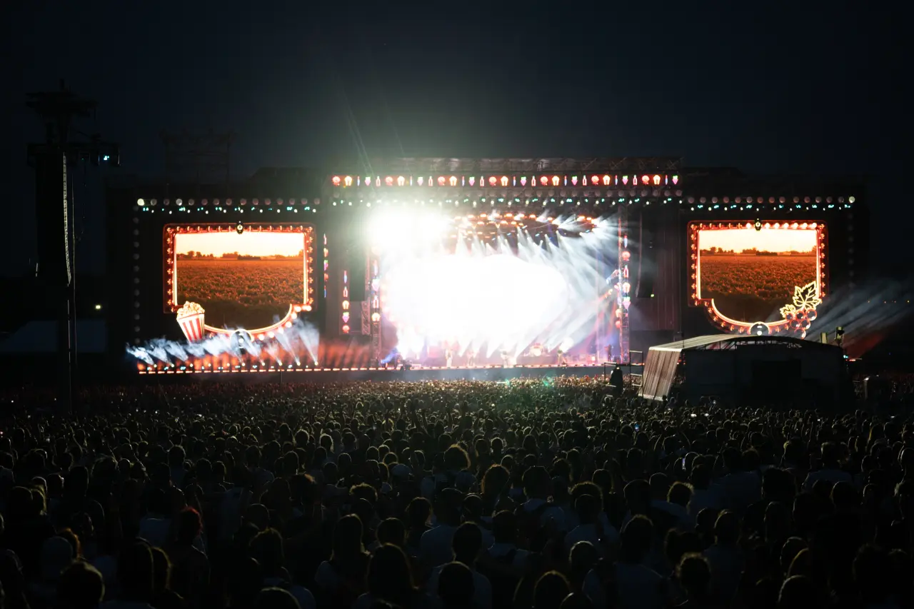 E poi il colpo di teatro: un track vintage anni Sessanta compare all’improvviso. La band ci sale sopra, lentamente si muove e fa il giro dell’intera Campovolo, accorciando ogni distanza, ricordando che la musica, quando è autentica, è un corpo a corpo con la gente.