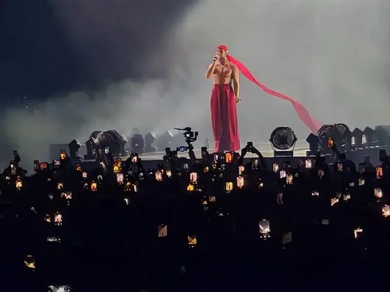 Sebbene si parta con una sezione di tre pezzi vicini all’EDM, con tanto di luci e ballerini sul palco, il risultato fin da subito non convince pienamente. La frenata arriva in tutte le altre parti, per poi riportare energia e ritmo nell’ultima sezione del concerto. Nella maggior parte del concerto i tempi sono rallentati, le atmosfere molto eleganti ma un po’ troppo dilatate, sino ad arrivare alla coda di “Stella cadente” dove una lunga parte su base strumentale un po’ monotona, per quanto intensa, scorre su una scena completamente vuota con luci giallo intenso. Incomprensibile.