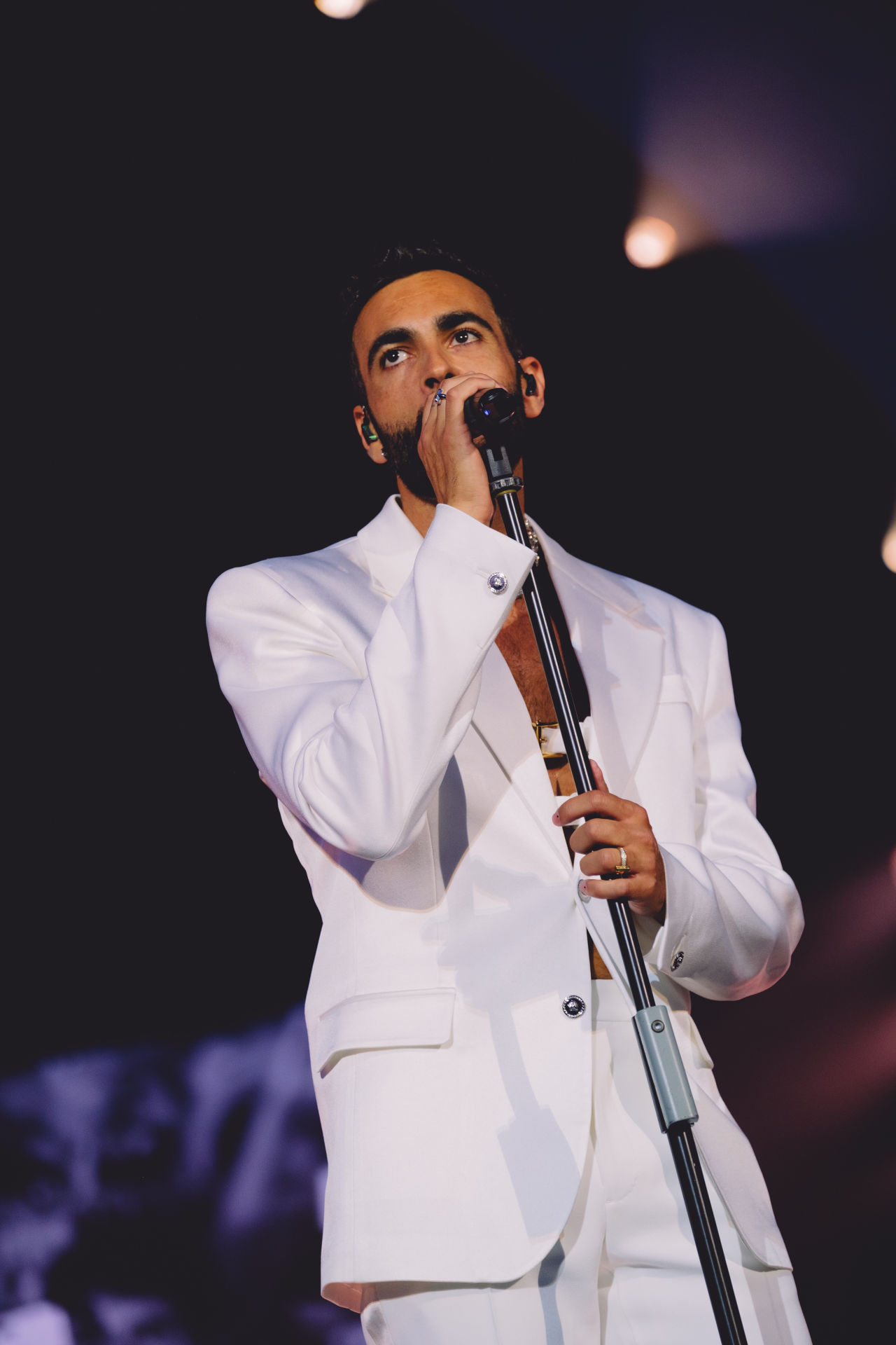 Marco spinge la sua voce, si emoziona, suda ma rimane perfetto e giganteggia sul palco.