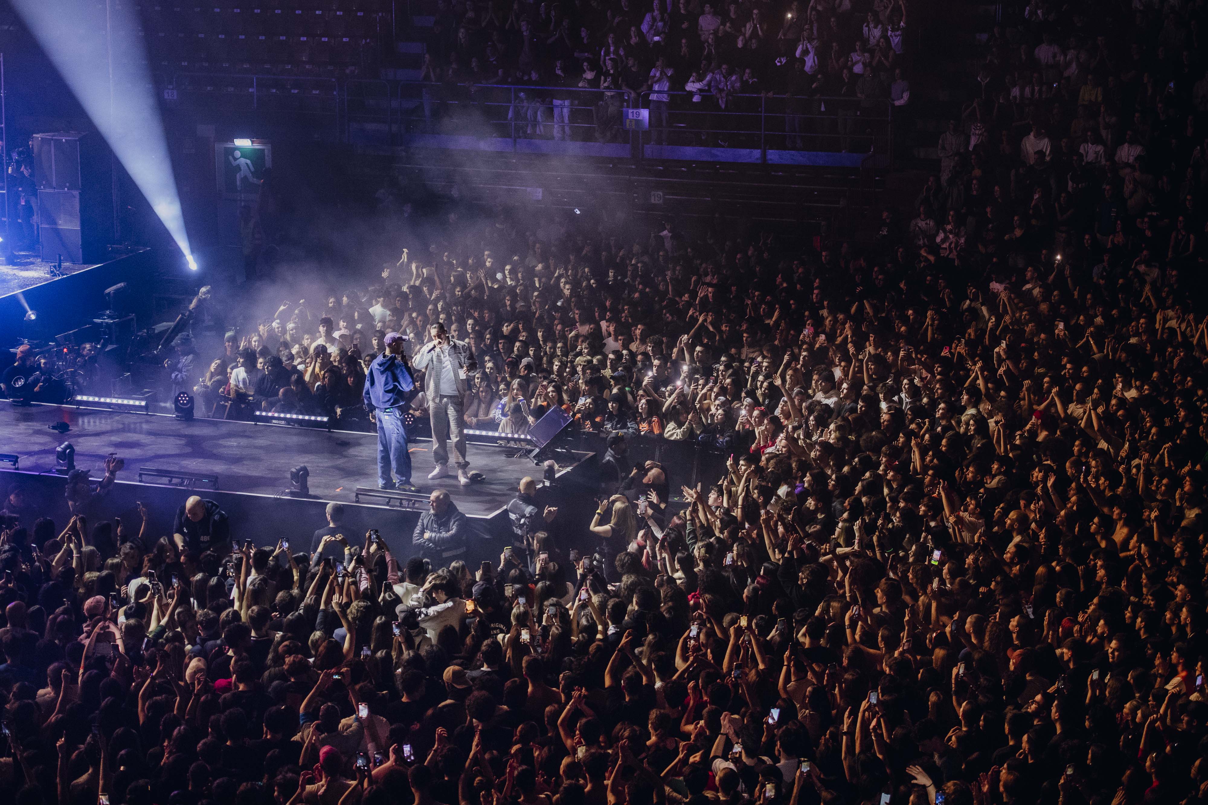Un concerto come le grandi produzioni. Non c’era una band ma il dj con le basi anche se in una parte del set ha suonato con una vera e propria band i 72 Hours Post Fight e in altre canzoni c’erano le chitarre e addirittura il sax a contorno delle sue barre.