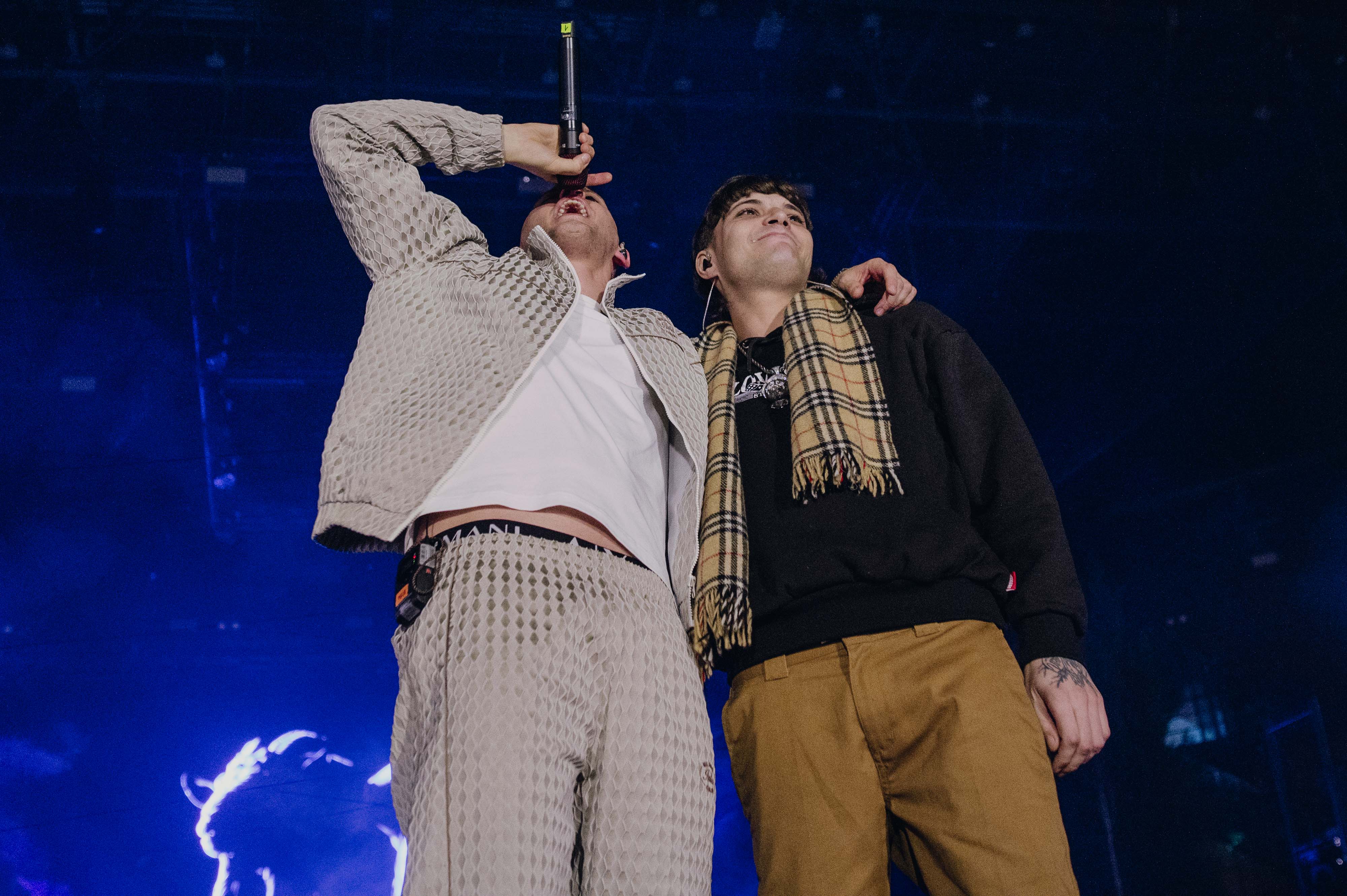 Un concerto come le grandi produzioni. Non c’era una band ma il dj con le basi anche se in una parte del set ha suonato con una vera e propria band i 72 Hours Post Fight e in altre canzoni c’erano le chitarre e addirittura il sax a contorno delle sue barre.