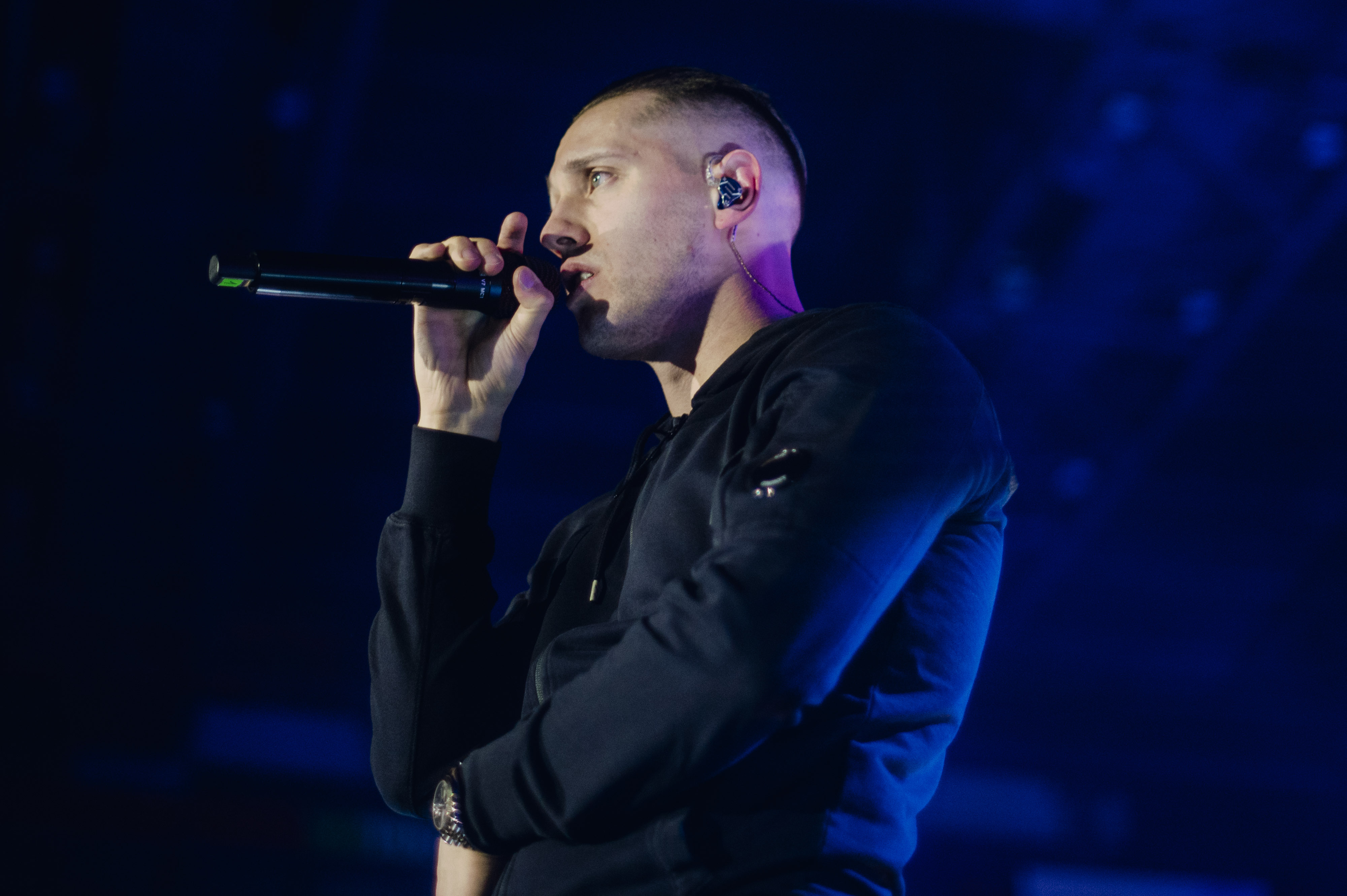 Un concerto come le grandi produzioni. Non c’era una band ma il dj con le basi anche se in una parte del set ha suonato con una vera e propria band i 72 Hours Post Fight e in altre canzoni c’erano le chitarre e addirittura il sax a contorno delle sue barre.