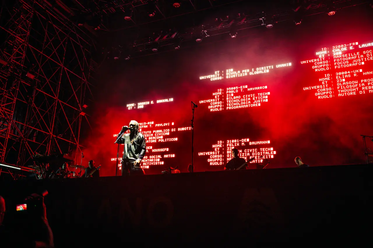 I loro non sono concerti convenzionali, lo sapevo, me lo aspettavo, ne ero certo. Il loro è un viaggio nella realtà del mondo, una discesa in un tempo rallentato, distopico e inquieto, tra bassi profondi, visual spietati, e testi che non lasciano scampo.
