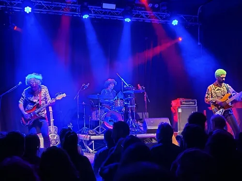 Non bisogna farsi ingannare da quel “funk” del nome perché il funk è solo una parte di quello che propongono. La loro musica è un grande mix dove appaiono, funk, blues, tanto blues, desert blues, afro beat, una spruzzata di psichedelia, echi che arrivano dal Maghreb e dal Mediterraneo, una buona dose di rock, di jam rock, il tutto con un grande collante che è il ritmo, il groove. Detta così può anche sembrare una caleidoscopica accozzaglia indefinita ed indefinibile di stili, cosa che in realtà non è. Tutto è definito, chiaro, composito, ma soprattutto vitale e coinvolgente. È un mix perfettamente armonico e riuscito. Un’ora e mezza abbondante dove tra lunghe sgroppate di chitarra, tra soli e micidiali riff oltre che a pulsanti giri di basso è impossibile non trovarsi a ballare e ad essere coinvolti, se non anche travolti.