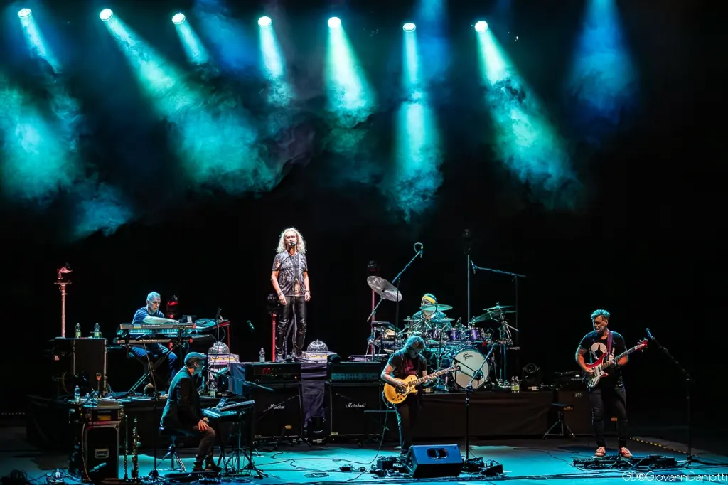 Al termine arriva la prima standing ovation, la band esce di scena ma il pubblico non ci sta (ormai il rituale è il medesimo). Così Il chitarrista e soci tornano in scena e ci riportano al 1973 con “Selling England by the Pound” da cui propongono “Firth of Fifth” introdotta dal riconoscibilissimo arpeggio di pianoforte. Ancora una volta nel brano la chitarra è protagonista in un lungo evocativo, dilatato e inconfondibile assolo di chitarra, preceduto da uno di sax. Per gli amanti dei Genesis è allo stesso tempo delizia e sale sulle ferite….