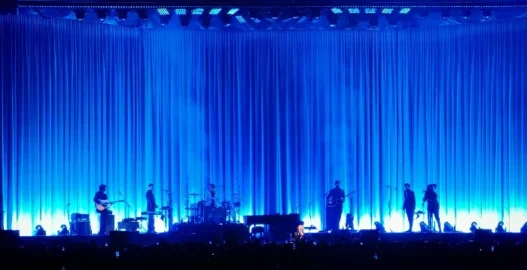 Il pubblico ha reagito con calore: dalle prime file è partito il coro “Sei bellissimo” sulla celebre canzone di Loredana Bertè, che la band ha provato a seguire. L’ambientazione dello show aveva un sapore quasi teatrale — del resto sarebbe stato forse il luogo ideale per un concerto del genere, che in uno spazio meno dispersivo avrebbe potuto mantenere intatta la tensione emotiva senza dover necessariamente alzare il volume.