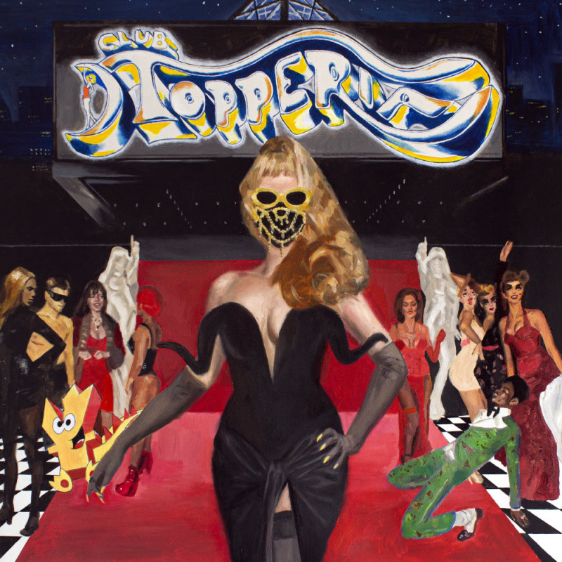 CLUB TOPPERIA è dunque un boudoir post-apocalittico colorato da acconciature bizzarre e da drink fluorescenti, look spaziali e make-up disciolti dal sudore. Il tempio di un culto dionisiaco dove il piacere diventa strumento di rivendicazione identitaria, di assoluta libertà dei corpi e autodeterminazione dei soggetti.