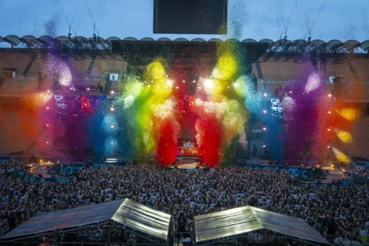 Siamo partiti da un’idea molto semplice: volevamo raccontare il nostro immaginario. Ci piaceva l’idea che lo show non fosse solo una scaletta di canzoni, ma un vero e proprio mondo visivo. Per questo, ad esempio, abbiamo scelto di iniziare con i coriandoli — 360 kg, per la precisione, un orso bruno di coriandoli! — e di partire con i pezzi che solitamente si lasciano alla fine. Era una sorta di dichiarazione d’intenti: “guardate che succederanno cose strane, fuori dall’ordinario”.