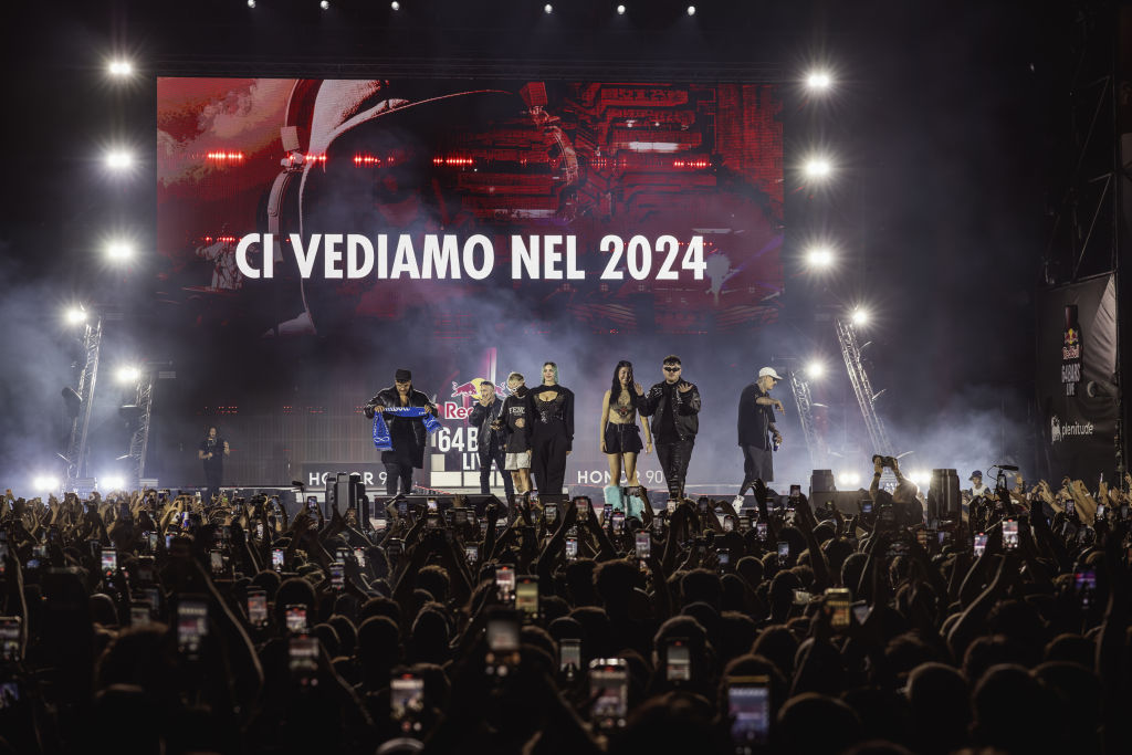È quindi il turno di Rose Villain, che oltre al suo Red Bull 64 Bars, prodotto proprio dal dj in cabina di regia MILES, si esibisce con alcune tracce del suo disco “Radio Gotham” accompagnata da un eccezionale corpo di ballo. Arriva l’uomo dei record dell’ultimo anno, Lazza, che infiamma il pubblico con due Red Bull 64 Bars e un medley di alcune sue hit.