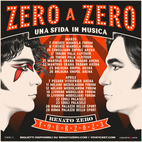 Per riabbracciare il suo pubblico che non ha mai smesso di sostenerlo, nei mesi di marzo e aprile RENATO ZERO girerà l’Italia portando nei principali palazzi dello sport tutto il suo mondo di artista rivoluzionario, autentico catalizzatore di energia ed entusiasmo.