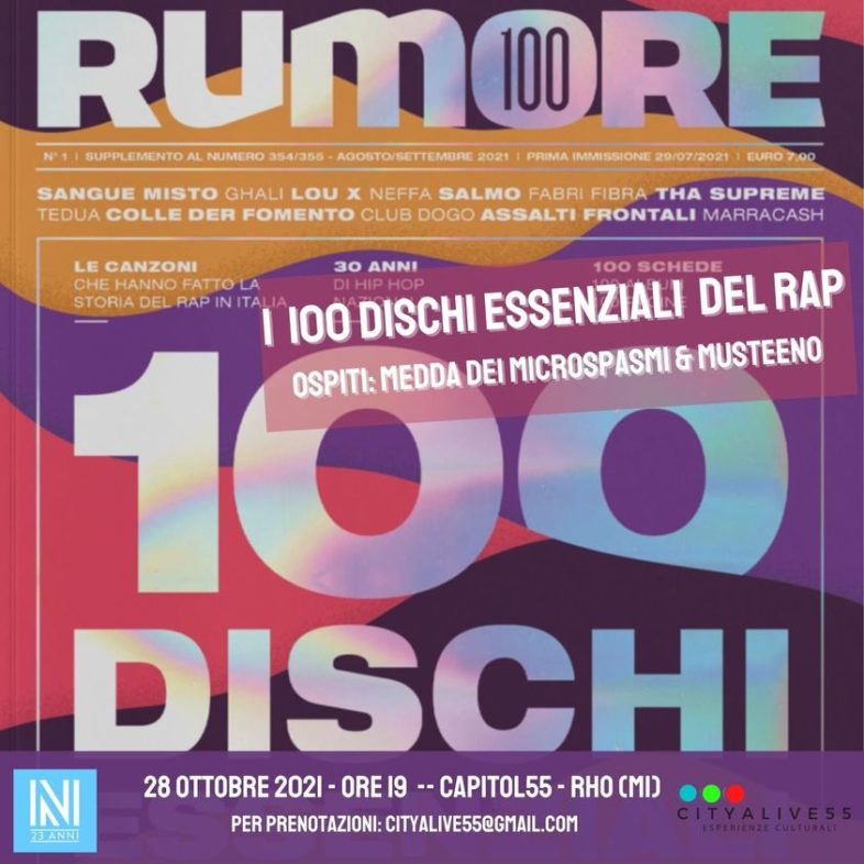 Rumore100 in tour sarà a Rho il 28 ottobre. 30 anni di rap italiano in 100 dischi essenziali raccontati dai giornalisti di Rumore e dai protagonisti del Rap Italiano.