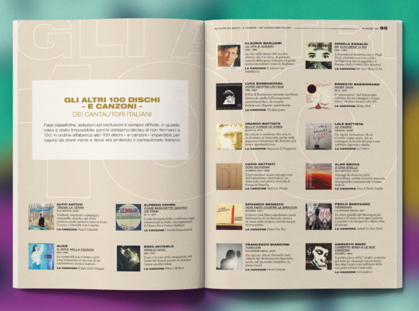 Questa volta lo speciale editoriale, in edicola dai primi di agosto, traccia, attraverso 100 album, la storia lunga oltre mezzo secolo del cantautorato italiano, quello che è forse l’unico genere musicale – se di genere si può parlare in un mondo tanto variegato – davvero autoctono del nostro paese.