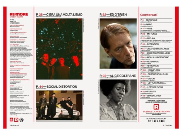 Passando alle rubriche: in “Futura” trovano spazio Slippers, Dwellnought, Giacomo Zanus, Die Spitz, Essaira, Haylie Davis e Ta Ga Da, in “My Tunes” Maurizio Blatto rievoca il meraviglioso universo DIY di Calvin Johnson e dei suoi Beat Happening, ne “I Complessi” intervistiamo nientemeno che l’ineffabile Flavio Giurato, in “Flashback” Rossano Lo Mele tratta la voce aliena di Jimmy Scott e il suo leggendario album del 1963, Falling In Love Is Wonderful, prodotto da Ray Charles, finalmente ristampato in vinile, mentre in “Visioni” il nostro film del mese è Tuner di Daniel Roher.