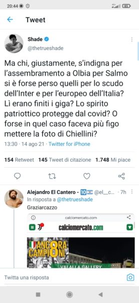 Grazie #salmo pic.twitter.com/MS6Xv5GKc3— Alessandra Amoroso (@AmorosoOF) August 14, 2021