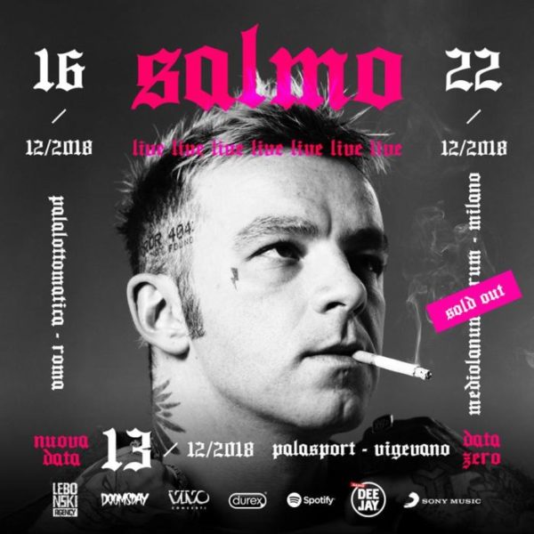 Dopo aver annunciato, con due mesi d’anticipo, il sold out della data al Mediolanum Forum di Milano, il 22 dicembre 2018, Salmo, il profeta del rap italiano, aggiunge al “Live Tour 2018” una data zero al Palasport di Vigevano, giovedì 13 dicembre 2018.