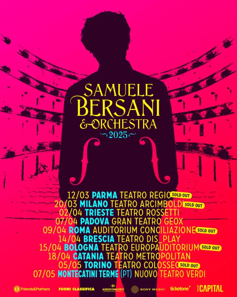 A suggellare questa collaborazione speciale, il prossimo 21 marzo uscirà il disco “Samuele Bersani & Orchestra” (Sony Music Italy), una raccolta che racchiude le emozioni di questo tour e le reinvenzioni orchestrali del suo repertorio.