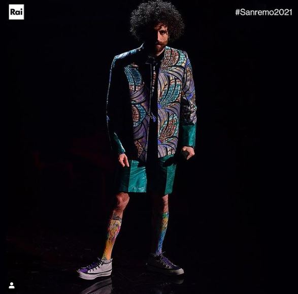 WILLIE PEYOTE – Dicevamo, la camicia sbottonata. Non avevamo ancora affrontate il problema “variazioni sul tema blazer nero” che si ripresenta puntualmente ad ogni Sanremo. E invece eccolo qui. Voto 3.