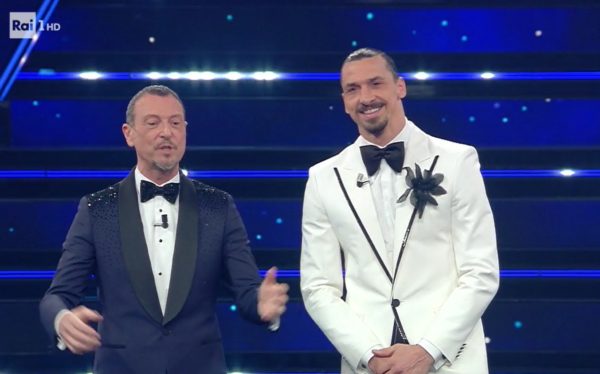 Entra Ibra con la sua personalissima formazione. In attacco lui, centrocampo Fiorello, in difesa l’orchestra che ha difeso la forza della musica. Amadeus portiere. Stopper Acchille Lauro. Una squadra di assi.