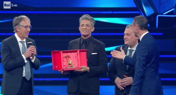 Amadeus consegna il Premio Città di Sanremo a Fiorello.