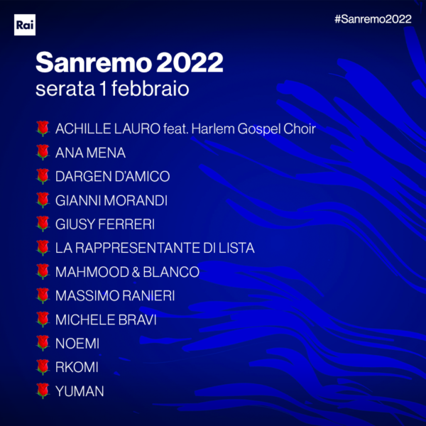 “L’ordine è casuale”, ha precisato il conduttore e direttore artistico. Nelle conferenze stampa che precedono il Festival sarà annunciata la scaletta dettagliata delle esibizioni.