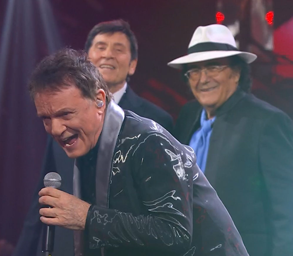 Gianni Morandi, Massimo Ranieri e Albano fanno cantare tutti (ma proprio tutti, sala stampa compresa).