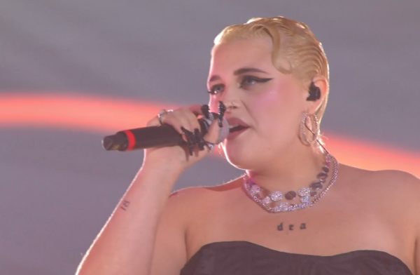 Una super cassa per un super testo impegnato sul “cessate il fuoco”, che dice anche sul palco alla fine dell’esibizione.