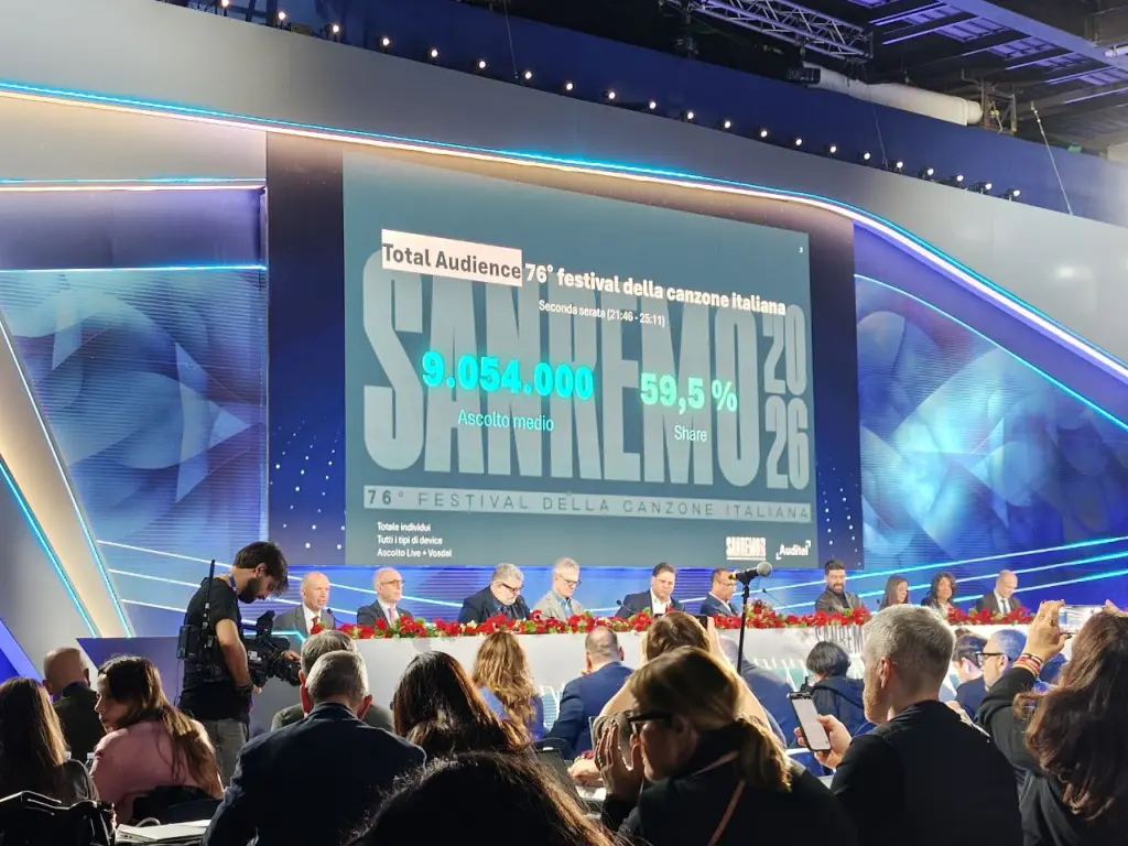 9 milioni 53 mila, con uno share del 59.5 per cento, i telespettatori che – secondo la Total Audience rilasciata da Auditel – hanno visto la seconda serata del 76° Festival della Canzone italiana.