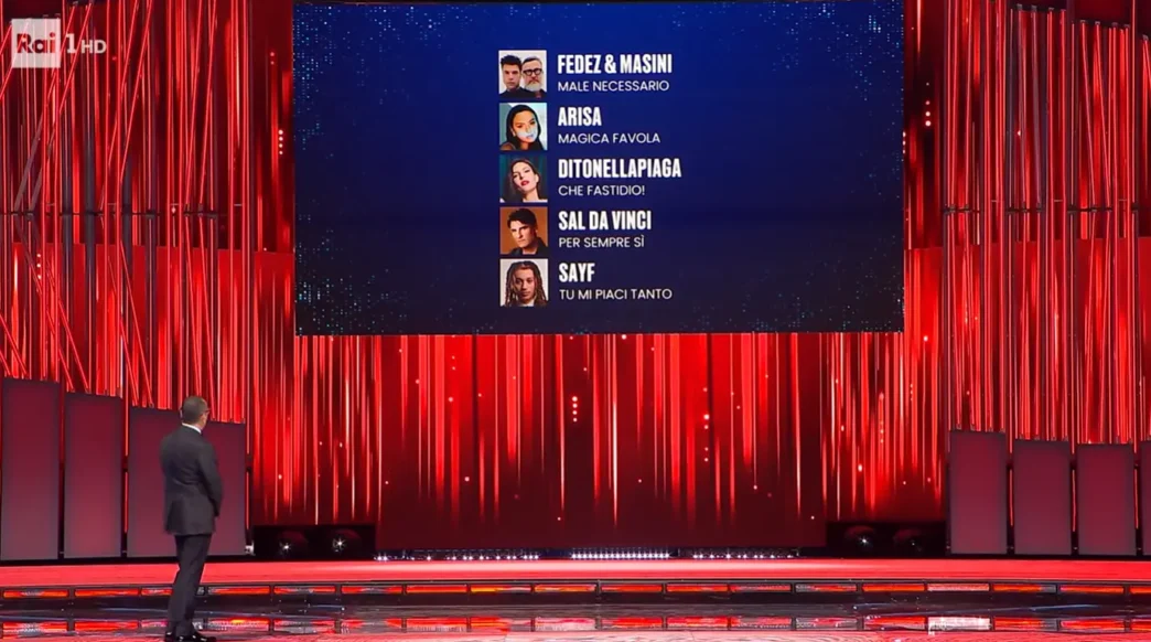 SANREMO 2026: i primi cinque sono FEDEZ & MASINI – ARISA – DITONELLAPIAGA – SAYF – SAL DA VINCI